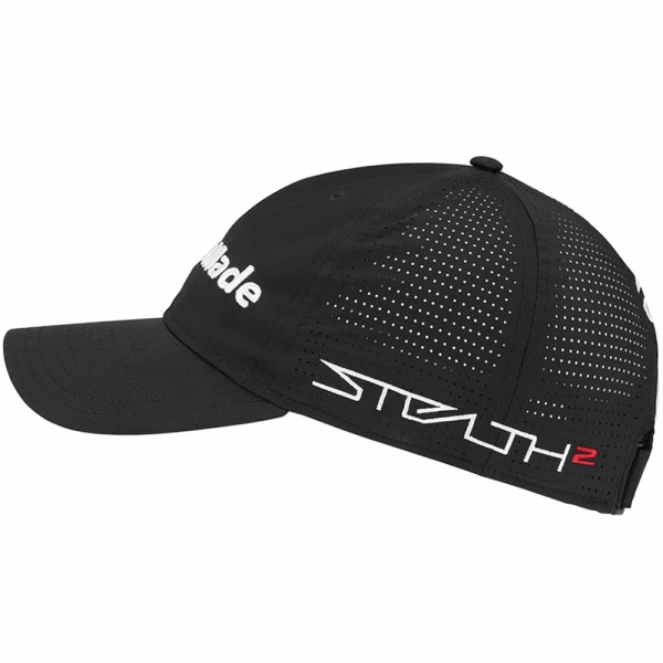 The relaxed fit of the Taylormade Tour Lite-Tech Golf Cap will help you keep cool while you shield your face from the sun. Made from lightweight polyester material, the hat features laser perforated back panels for additional ventilation and breathability.