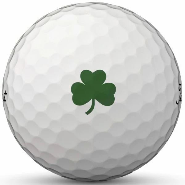 Bring your self a bit of luck on the course with the special edition shamrock logo Titleist Pro V1 Golf Balls are renowned for their legendary performance, and Titleist’s flagship model continues to push the boundaries of what a golf ball can achieve. The performance improvements start with the new High Gradient Core Technology. Composed of increasing stiffness levels, this unique core reduces long-game spin, resulting in increased distance and consistency with a tighter shot dispersion. Approach and shorter shots are equally important, and as such, Titleist finishes the Pro V1 with their proprietary urethane cover. This premium soft cover provides the vaunted short game control, feel, and precision required to spin and stop it when it’s time to score. The final ingredient in Titleist’s tour ball is aerodynamics. The Pro V1’s 388 dimple design delivers a penetrating and consistent flight pattern that’s stable in the wind and fits through even the most exacting windows demanded by the world’s best players.