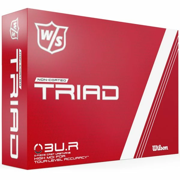 Unlike traditional golf balls, theย Wilson Triad Golf Ballsย feature a high MOI, Tri-Balanced design that moves weight from the core to the outer layers of the ball, resulting in faster ball speed, lower driver spin, and a more stable ball flight.ย Additionally, this unique design ensures that each of the ballโs layers are equally dense, thus eliminating defects during the manufacturing process.ย Consequently, the Triad performs like a one-piece ball, delivering pinpoint accuracy and putts that roll true.