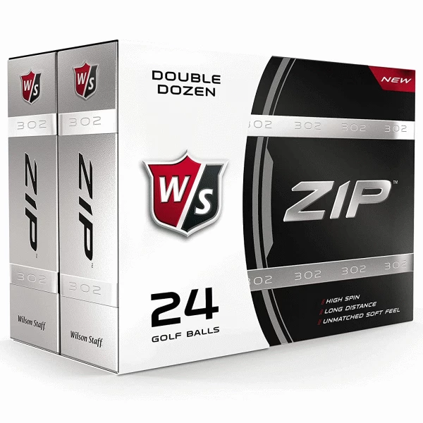 The new Wilson Staff Zip Golf Ball combines a premium surlyn ionomer cover and low compression to offer an amazing tour like soft feel. The 302 PhD aerodynamics dimple pattern features unique flat-bottomed, shallow dimples that rip through the air to create a stable, penetrating flight. With minimal spin off the tee while and a powerful penetrating ball flight the Wilson Zip golf ball offers maximum spin with short irons and wedges. The patented Zero compression core combines with a speed-generating ionomer cover to achieve both feel and distance.